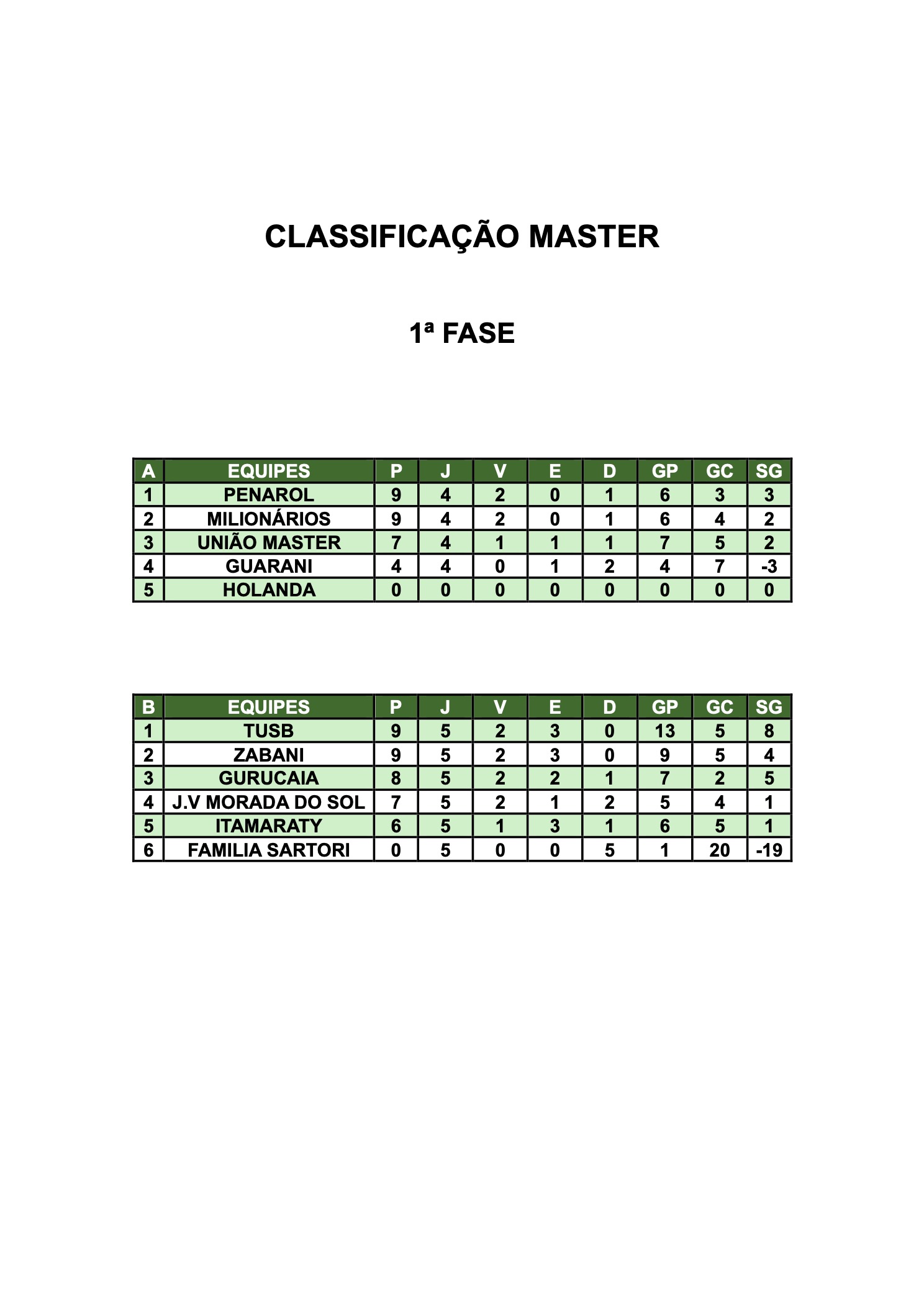 | 1 | DOMINGOD ARAUJO DE SOUZA UNIÃO MASTER |