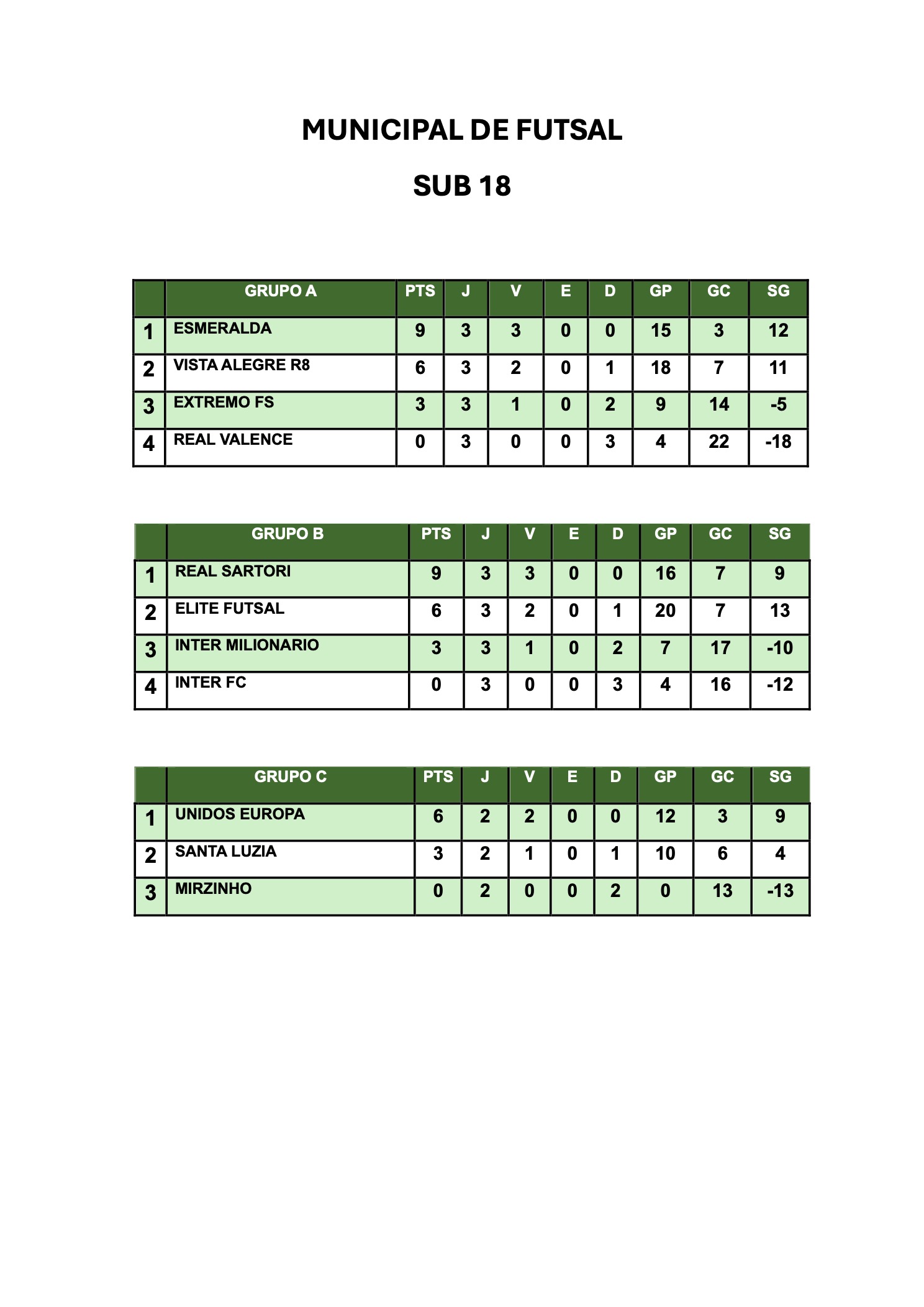 | 1 | NICOLAS RAFAEL DOS SANTOS INDALECIO ELITE FUTSAL |